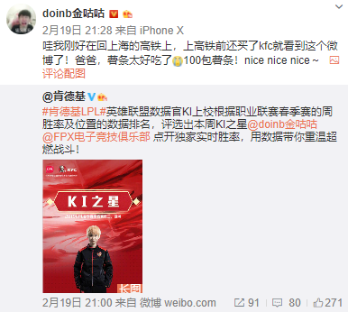 赛后Doinb连夜赶高铁回上海,还在微博与粉丝互动分享今日份的喜悦的同时还不忘记点赞一下KI上校。就当我们以为Doinb连夜回到上海就要好好休息的时候,一个直播间悄然开播,Doinb出现在直播间进行了自己的国服rank训练直至凌晨三点才关闭直播(电竞网络直播)间。