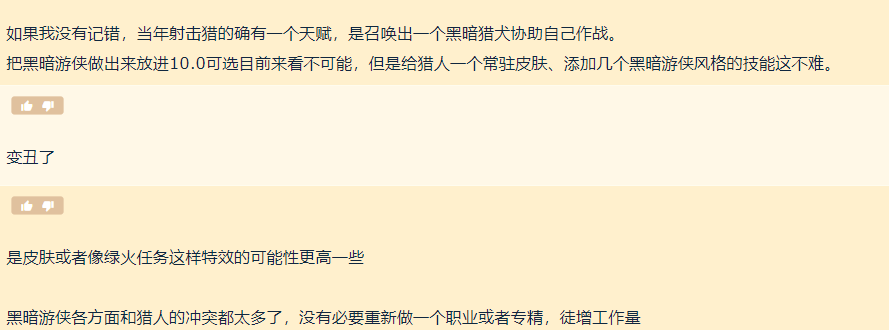 早在7.0末期的时候,坊间就已经流传出《魔兽世界》设计师欲将黑暗游侠设计为新职业的消息,可直至10.0新职业唤魔师出现,玩家们也没能等到这个人气职业的出现。而让人万万没想到的是,根据目前9.2.5测试服的最新情报来看,黑暗游戏又有希望会成为猎人玩家的“新”外观。 从目前数据大神挖掘出来的信息来看,被遗忘者会在希尔瓦娜斯停留在暗影界赎罪之后,开始选择新的领袖与盟友,因此他们会发布一个名为“黑暗游侠的纪念品”任务支线,让玩家参与到最新的黑暗游侠行动中去。 同时,在测试服,黑暗游侠眼中的红光也变得更加浓郁了,头上的兜帽则获得了一次外观上的更新,不禁让人开始好奇暴雪是否会将“黑暗游侠”作为新的外观(或玩具)来作为任务奖励,赠送给玩家。 带着这样的疑问,又有技术大神挖掘了测试舒服的道具库库,从中发现了一个与猎人相关的外观为黑暗游侠的兜帽。因此就有网友大胆猜测,黑暗游侠这个新职业暴雪是有过预案的,可能是因为内部进度的问题被搁置了,所以最终变成了猎人一套全新的装备外观,会在9.2.5版本内上线支线任务。 对此网友的反应倒是十分淡定,“如果我没有记错,当年射击猎的确有一个天赋,是召唤出一个黑暗猎犬协助自己作战。把黑暗游侠做出来放进10.0可选目前来看不可能,但是给猎人一个常驻皮肤、添加几个黑暗游侠风格的技能这不难。”,“访谈都说了,黑暗游侠未来有机会做成新外观,什么新职业新专精新皮肤就不要妄想了”,“大胆一点猎人的第四专精:黑暗游侠,完成一系列的任务后开启第四专精。”…… 总之,从目前曝光的消息来看,魔兽9.2.5信息量将会变得十分巨大,小伙伴们对此怎么看呢? |