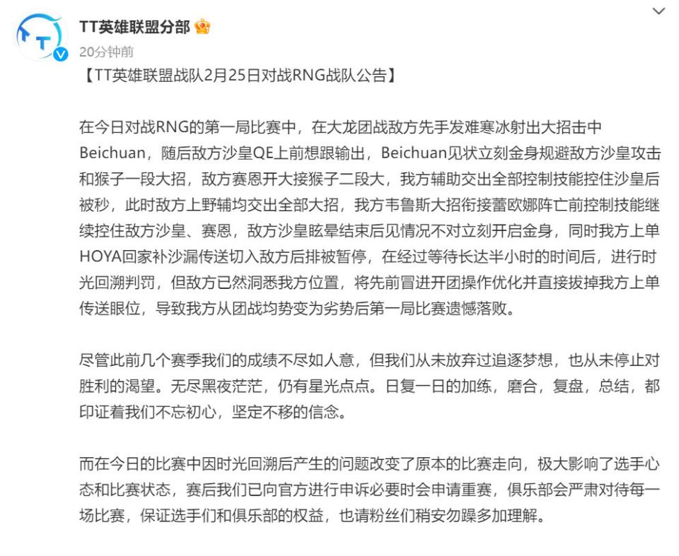 区别于传统的体育赛事,英雄联盟电竞场上暂停事件时有发生。此前曾引发玩家热议的RNG“时空回溯”,在今天终于有了来自于官方的解释;而另一边,退役选手金贡又一次对拳头发起了申诉,理由是S9赛季的冠军皮肤分钟至今仍未发放...... 接下来就让咱们一起来看看,今日份的LOL圈热点吧。 暂停都是外设的锅? 上周RNG和TT战队进行了交手,并以2-0轻松击败了对方。然而在这场比赛中,RNG接连喊的两个暂停却掀起了轩然大波。特别是关键的大龙团,双方在都已落位的情况下,却因突发状况导致了“时空回溯”,这让一些人质疑起了这项判罚的公平性。 而时隔多日,LPL赛事官方终于公布了关于这场暂停的具体细节。并着重提到了,造成比赛暂停的原因是由于Angel的沙皇在按E技能时,会导致画面锁定,并弹出商店界面。这个问题出现了两次,分别导致了25分15秒和34分41秒的暂停。 第一次暂停时现场裁判认为这是按键冲突所导致的,暂停三分钟后继续拉起比赛;而第二次暂停出现后,技术员认为这是设备故障。裁判则根据比赛规则,使用了“时空回溯”的功能,这也是致使后续一系列争议事件出现的原因。 截止到目前,Angel的键盘依然在官方工作人员手里进行调查,还不确定一定就是外设的问题。因为好像有其他人也反馈过类似的问题(Angel原话),所以不排除这是沙皇的隐藏BUG。具体情况如何,可能要看后续是否还有别的选手反馈同样的麻烦。 金贡再度“催债”拳头 英雄联盟S赛作为全球顶级的电竞赛事,奖金数却并不高。而冠军选手除了能够获得荣誉之外,皮肤分成才是真正的大头。从S8赛季开始,英雄联盟S赛的奖金被大幅削减,这项规则就被沿袭至今。但截止到目前,只有两支队伍拿到过这笔分成。 近日的直播中,前FPX冠军上单金贡就又一次提到了这件事,称拳头到现在仍未发放冠军皮肤的分成。并且不是因为他退役的原因,而是整个FPX战队都没有拿到。在此之前金贡也反馈过这件事,拳头官方给出的答复是2月份发。 可现在已经来到3月份,关于这件事依然杳无音信。通过圈内好友了解到DK的S10冠军皮肤分成都已经发放的金贡,这才在观众面前再度谈起这件事。 过去曾有人质疑,这笔收益是不是在哪卡了?但FPX官方做出了澄清:“主办方直接发放给选手,并不会经过俱乐部。” 再过几个月,DRX的冠军皮肤就将迎来发售。可关于FPX冠军皮肤的分成问题依然无解,后续只能等待拳头官方给出的答复了。 LEC季后赛出场率最高英雄胜率垫底? LEC首届冬季赛现已落下帷幕,大家也都开始将精力从战队、选手之间的较量中抽出来,认真复盘起过去几周所发生的比赛。而不看不知道,在BP选择这一栏韦鲁斯的定位变得非常特别。因为他的出场率是LEC季后赛中最高的,胜率却是最低的。 在LEC季后赛中韦鲁斯仅有25%的胜率,职业赛场上这已经是个低到夸张的数字了。并且绝大部分韦鲁斯获胜的比赛,都是由G2的AD选手Hans Sama所贡献的。 过去的几个版本中,泽丽和卢锡安在各大赛区都有着很高的优先级。不仅仅是因为他们在全时段都有较为均衡的表现,AD英雄中少有的位移能力,同样是他们被看中的原因。作为传统AD的韦鲁斯,并不具备这样的技能机制。这就使得在团战中,他的输出位置会比较差。 但G2却很擅长玩韦鲁斯体系,不单单是因为Hans Sama强大的个人能力。在BP选择上,下路只要出韦鲁斯,上、中就会有纳尔、猪妹这样的前排来提升保护能力。最终,能为常人所不能为的G2,在LEC冬决上横扫了MAD拿下队史第10冠。 而可以预见的是,在接下来的LEC春季赛中,G2如果能一直保持BP优势,竞争力还将不断提升。 |