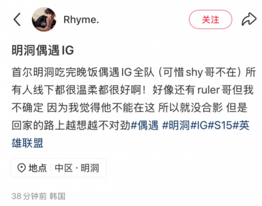 不是,原来大家并没有在写段子,而是GEN真传授IG打T1秘籍了? 近日,有网友在韩国旅游期间,线下偶遇了IG成员,引起了一众吃瓜群众的关注。原来现实比段子都离谱,LCK与LPL这一次已经团结一致,誓要把T1送上17强的宝座。 事情是这样的,有网友国庆期间去了韩国首尔游玩,结果在明洞的街上偶遇了IG的成员Wei、Rookie、Gala、Meiko,还听说The Shy跟Ruler也在路上准备来聚餐。于是乎,他跟大家合影之后,也就提前离场,不打扰IG全队聚餐。 事后,这位网友越想越不对劲,虽说Ruler在LPL期间确实跟各大战队的选手混得比较熟,但大晚上出来跟IG全队出来聚餐这个事情,基本就是在明示他的时间安排跟IG众人的行程重合。并且在入围赛马上要开打的这个时间节点上,IG全员不去Rank上分,跑去韩国线下聚餐,九成九也是在搞线下集训。 因此,在这个网友分享出这则消息之后,也是引发国内外一众吃瓜群众的关注:“和GG秘密会议研究怎么打T1?”,“GEN这老家伙终于把焚决教出来了”,“以丹尼的人脉应该是DK,而且Wei和DK上野今晚排位上来就撞车,应该是训练赛打完同时段开的Rank”…… 从理性角度来看,GEN应该不太会跟IG打训练赛,毕竟双方都是进入世界赛的战队,提前进行交流,容易把战术给泄露了。但从感性角度来看,GEN确实是全LCK最恨T1的战队,在之前石油杯上都把T1当冠军底座了。所以,双方教练、分析团队交流一下,T1的BP套路、T1选手的英雄池弱点、专杀T1战术还是很有可能的。 另外,DK战队也是跟T1鏖战五轮的存在,如果IG可以跟DK多打训练赛的话,未必不能带着许哥的精神把T1给干了。总之,不论如何,IG这个去韩国打集训的态度是拉满了。 |
