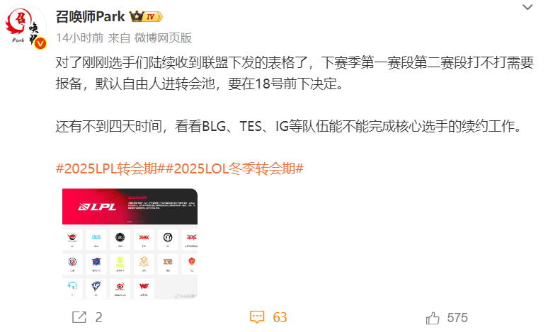 万万没想到,在关键时刻,是XUN抬了一手好兄弟ON?! 众所周知,在某K事件爆发之后,ON这位选手就被负面舆论缠身,乃至于坊间一度流传他在试训IG、JDG的消息。可出乎所有人意料的是,因为XUN的一项的决定,却让BLG正在争取ON的留队,以便能重组24年的阵容。 目前,根据“召唤师Park”的内幕消息称,所有LPL注册选手已经收到了来自联盟下发的表格,需要在11月18日之前,如实将续约情况以及下赛季意愿进行报备。如果没有续约又想要打第一、第二赛段的话,就默认进转会池,由全体俱乐部进行竞拍。 事后,朱开也在直播中证实了这则消息的真实性,但表示联盟是准备将拍卖行分为11月21日与12月初的两场。其中,今年有能力进世界赛但未续约的重量级选手单独一场,剩下选手则供俱乐部查漏补缺。目前,BLG、IG、TES这些队伍还未完成对选手的续约,变数相当之大。 尤其是BLG,因为管理层想要争取XUN的关系,导致他们不得不去谈其他四个位置的选手续约,不然XUN未必会选择回到BLG。当然,大家懂得都懂,受某K事件的影响,ON本人留队的意愿并不强,令BLG迟迟未能敲定明年的阵容。 同时,IG战队的情况也不明朗,只有The Shy跟Rookie是明确续约了,但因为今年拿了17强的关系。根据涵艺此前的内幕情报来看,赞助方是追加了投资,可能会再拍下一个上单,去搞上路轮换。而这就导致打野、下路、辅助都在观望,如果IG能签下更强力的上单选手,或许会选择签约。 说白了,虽然今年实行了新规准备改革,但俱乐部与选手方面依旧有应对的策略,要么靠兄弟LOL,要么就加钱续约,又或是引进外援。所以,除非发生某人气选手进自由人池子的情况,否则今年的转会期未必如玩家所想,出现全面大洗牌的情况。 |