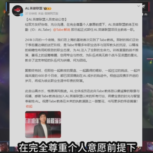 来吧,香克斯!明年咱们再好好努力吧 万万没想到,LPL转会期先曝出笑话的不是选手,而是教练。近日,AL俱乐部正式宣布Tabe即日起卸任LOL主教练一职,没错,Tabe要把天赋带到JDG,而此时香克斯的心情可谓一言难尽, 不是说好的明年一起努力?! 据涵艺爆料,Tabe打算把big wei(原BLG教练)、小白(原AL副教练)、家子正(BLG分析师,曾在23年跟Tabe一起合作过)也一同带去,简单来讲,就是整个王家班一起去了JDG。能让Tabe下如此重注,只能说这一笔交易,JDG给得太多了。坊间传闻是1000W+自主阵容选择权,换作是谁也很难不心动。 本来Tabe去哪个战队是自己的选择,旁人也不会多说什么,只是Tabe在看到T1夺冠时,曾说过这么一句话:“来吧,香克斯,明年我们再好好努力吧”。此话一出,瞬间让粉丝们都觉得Tabe会续约AL。然而,Tabe转头就带着副教练一起走了,直接把AL的教练组掏空。幸好爱笑用一天时间把新的教练组给搞定了,也算是给粉丝吃了颗定心丸。 不管怎么说,下赛季还是很期待AL原班人马在没了Tabe之后能去到怎样的高度。另外,BLG也将迎来重大变动,状元签首抢Xun的同时引进下路Viper,上路有Bin哥坐镇,中路knight和辅助ON这阵容看上去比24年的BLG还要强。当然,除了选手本身的实力以外,队伍的化学反应也是很重要,就看到时磨合成怎样了。 总的来讲,目前就BLG和AL的阵容相对明朗一些,其余队伍还没有进一步的行动,而刚收获Tabe教练组的JDG则迟迟没动静,像似一个氪了好多钱的土豪还没想好要买哪些极品装备一样,着实有点期待。小伙伴们对此有什么看法呢?欢迎在下方留言分享。 |