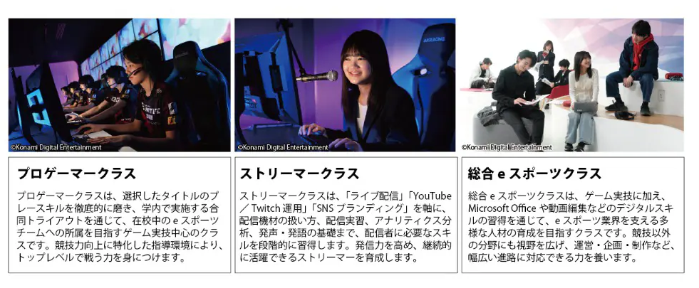 游戏老厂科乐美近些年来明显加大了对游戏开发的投入,其中也包括基础建设事业,旗下开设的电竞学院宣布新增学科,培育网络直播人材,预定2027年正式开设招生。 ·科乐美电竞学院是科乐美公司成立的三年制私立专科学院,成立之初就致力于培养职业玩家为宗旨,目前已经开设“职业玩家学科”与“综合电竞学科”两大科目,2027年新设立“网络直播学科”。 ·虽然很多优秀职业玩家都是自学成才,不过凭借科乐美的深耕游戏行业的实力和口碑,进入学院进行系统、专业性的学习深造也不失为理想的选择。 |